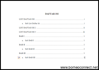 2. Masukkan tanda tab pada nomor halaman di sebelah kanan setiap judul atau subjudul