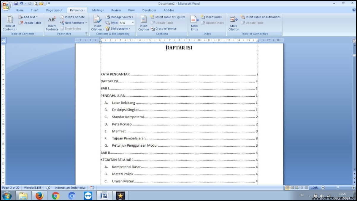 Cara Membuat Daftar Isi Ngelink