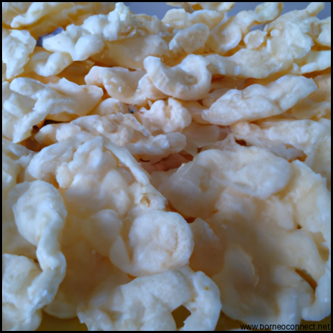6. Jika ingin memberikan warna pada adonan tepung tambahkan kunyit bubuk atau sedikit pewarna makanan merah sesuai selera