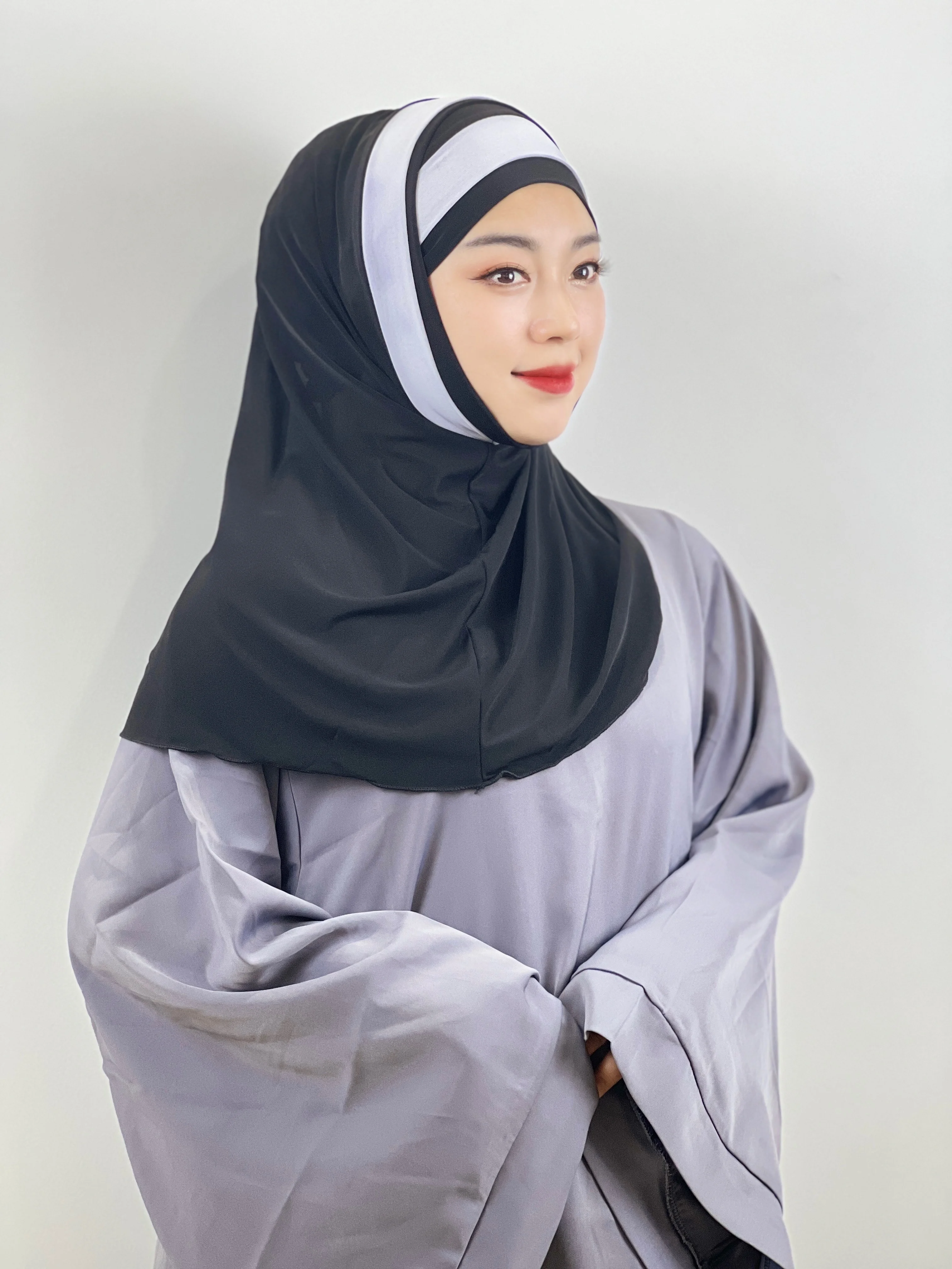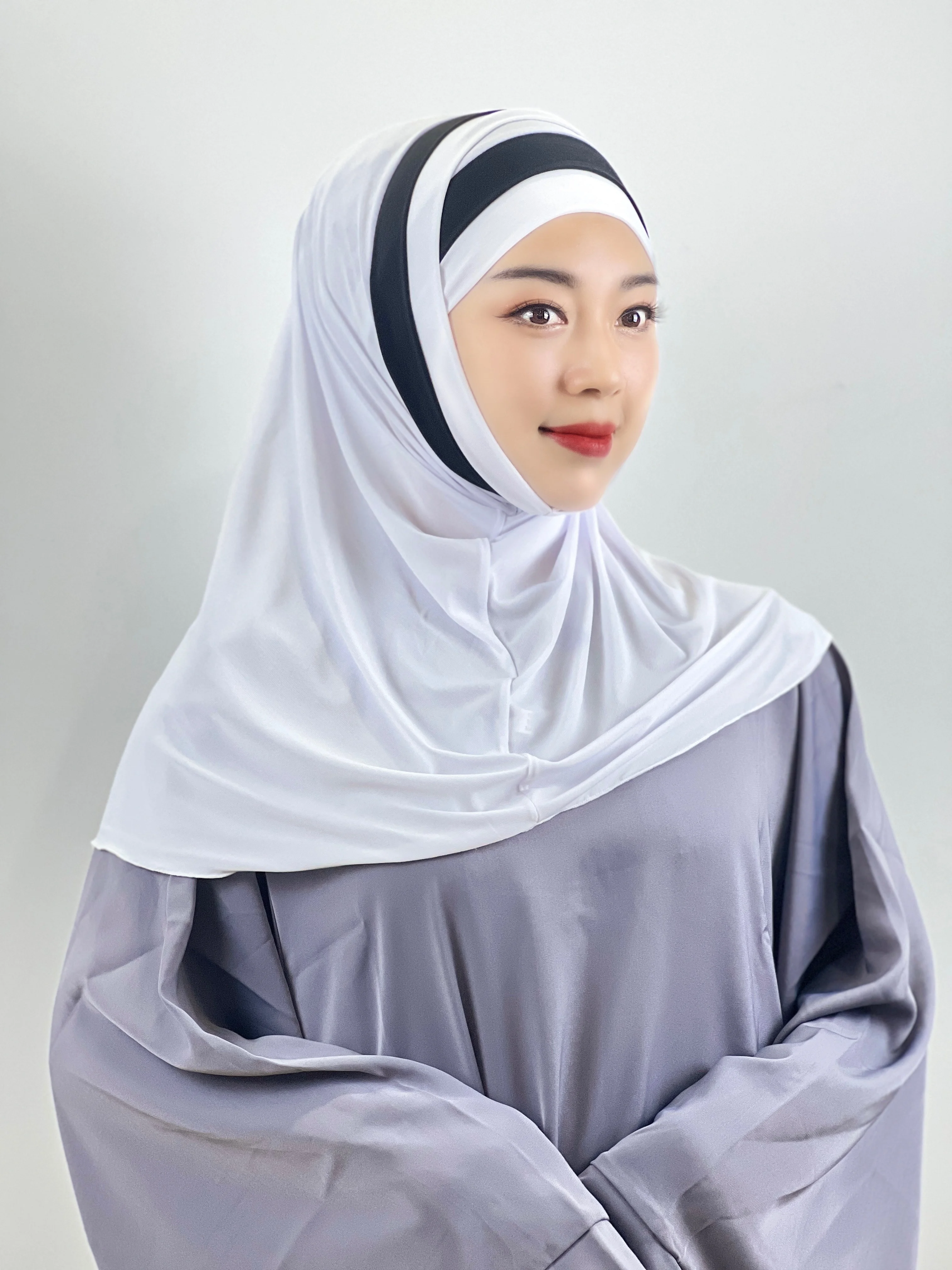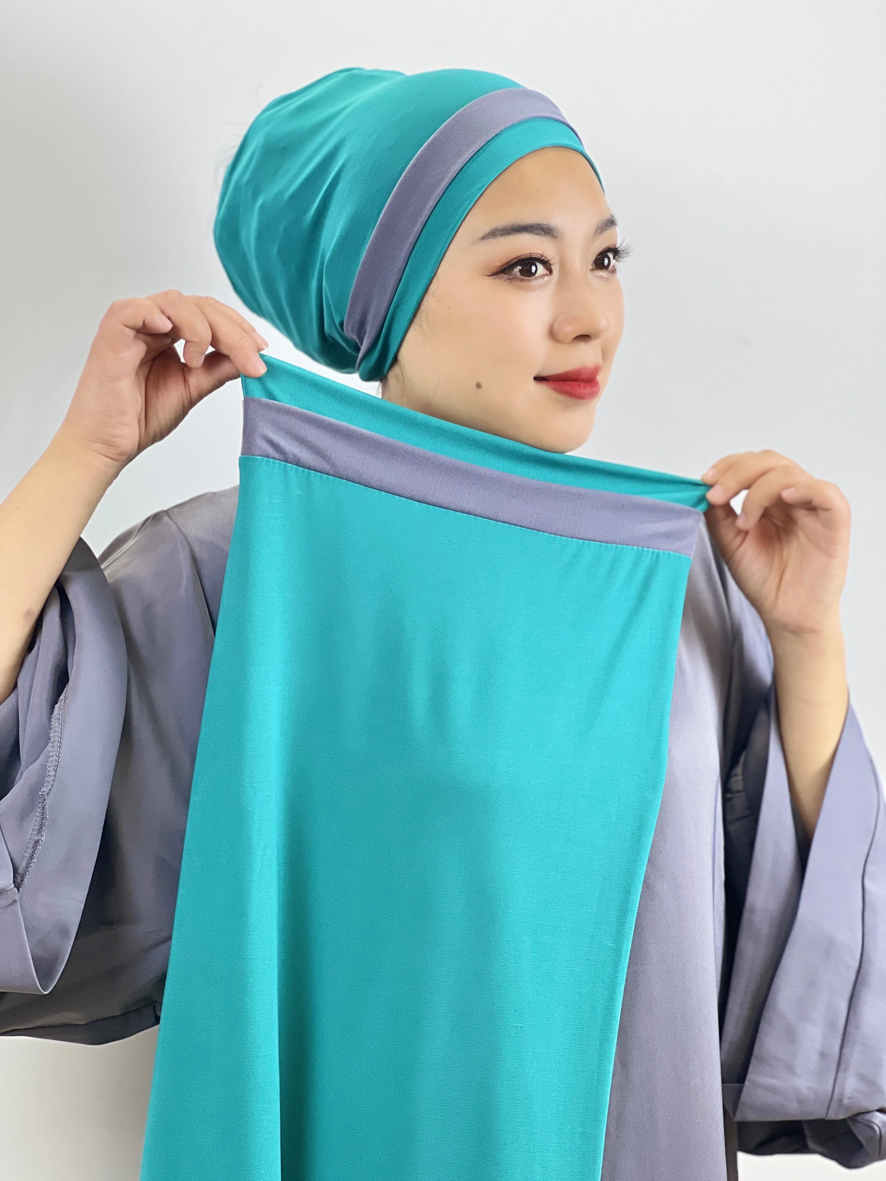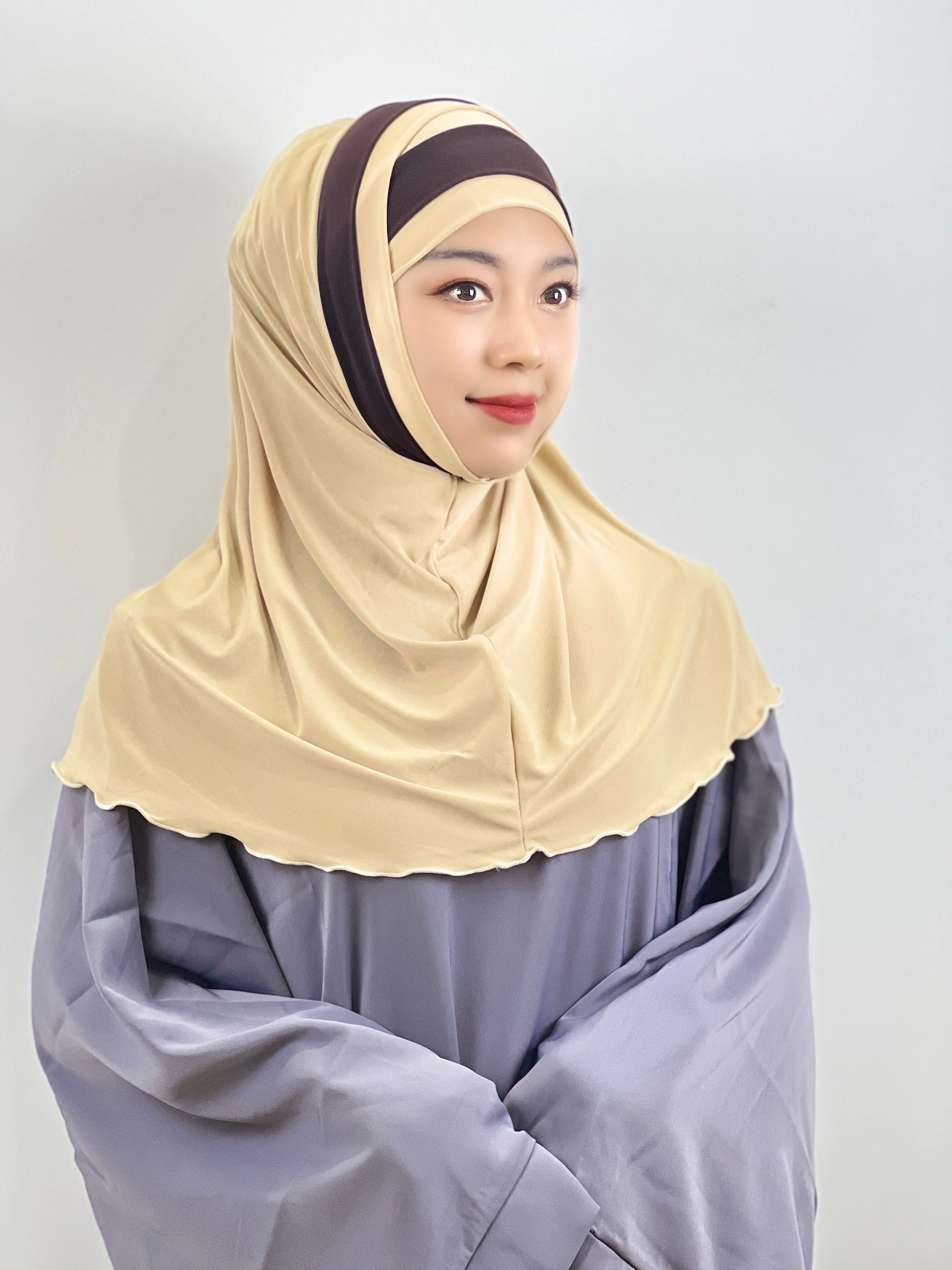 Euramerican Fashion Topi Pelindung Dahi Silang Jari Kaki Dua Warna Jahitan Serban Wanita Muslim Pesta Tabir Surya