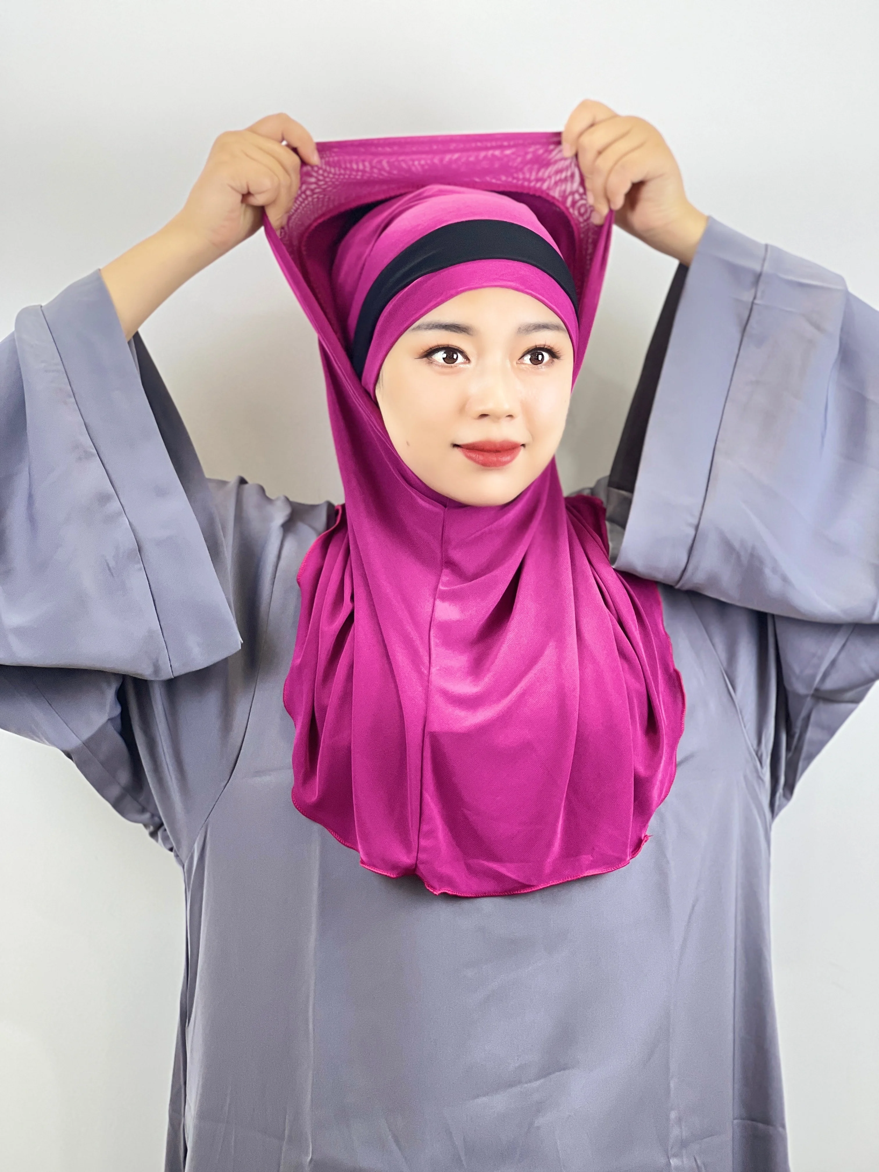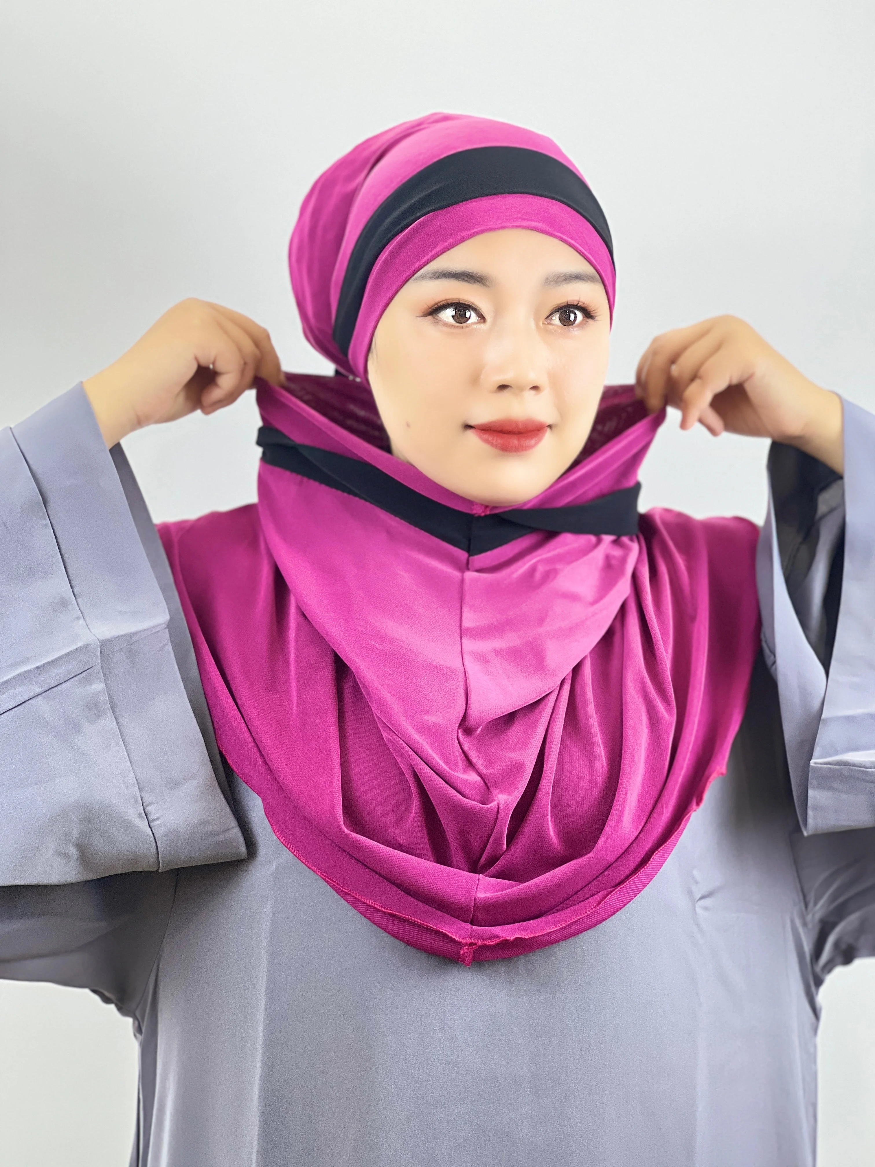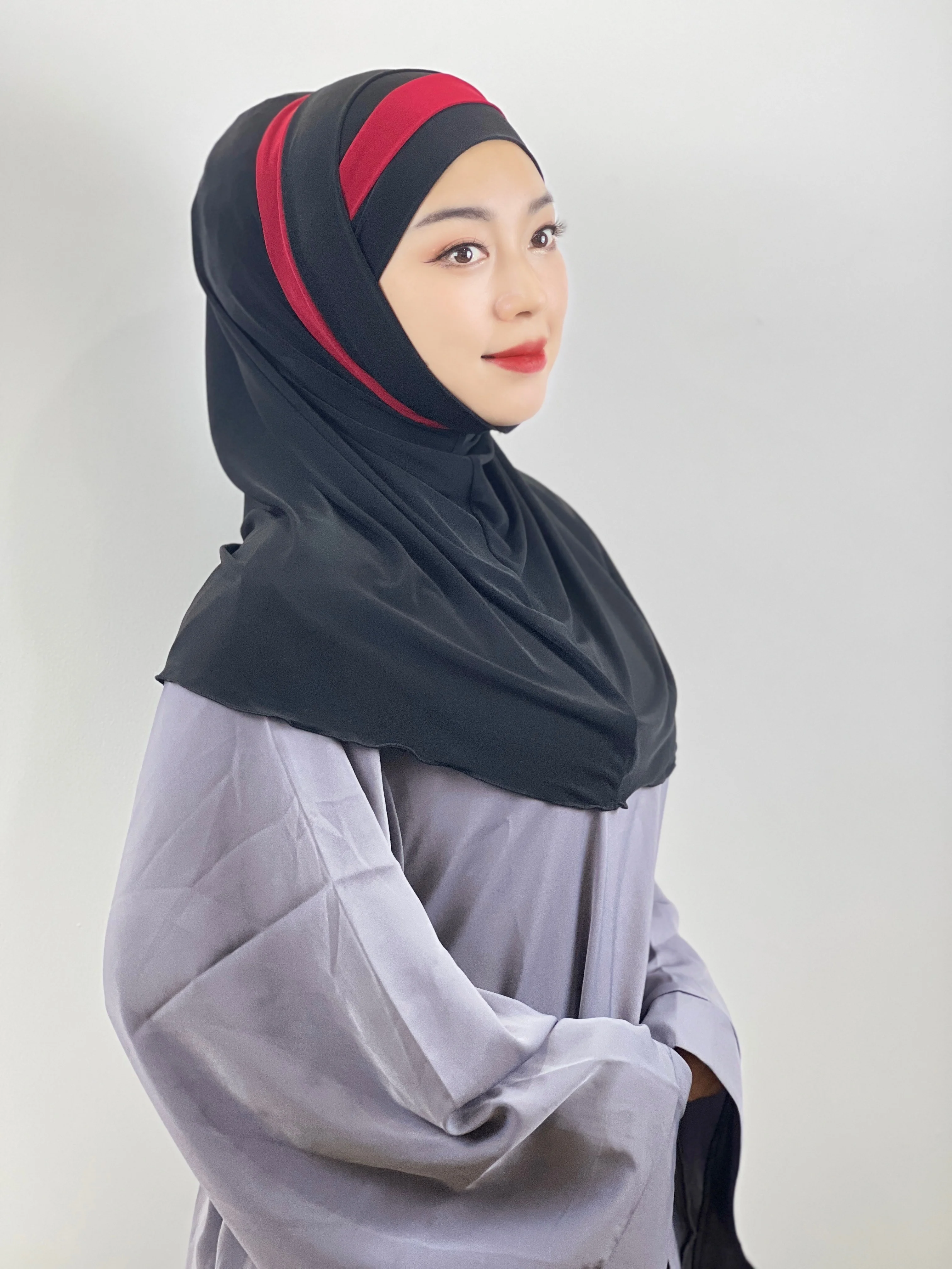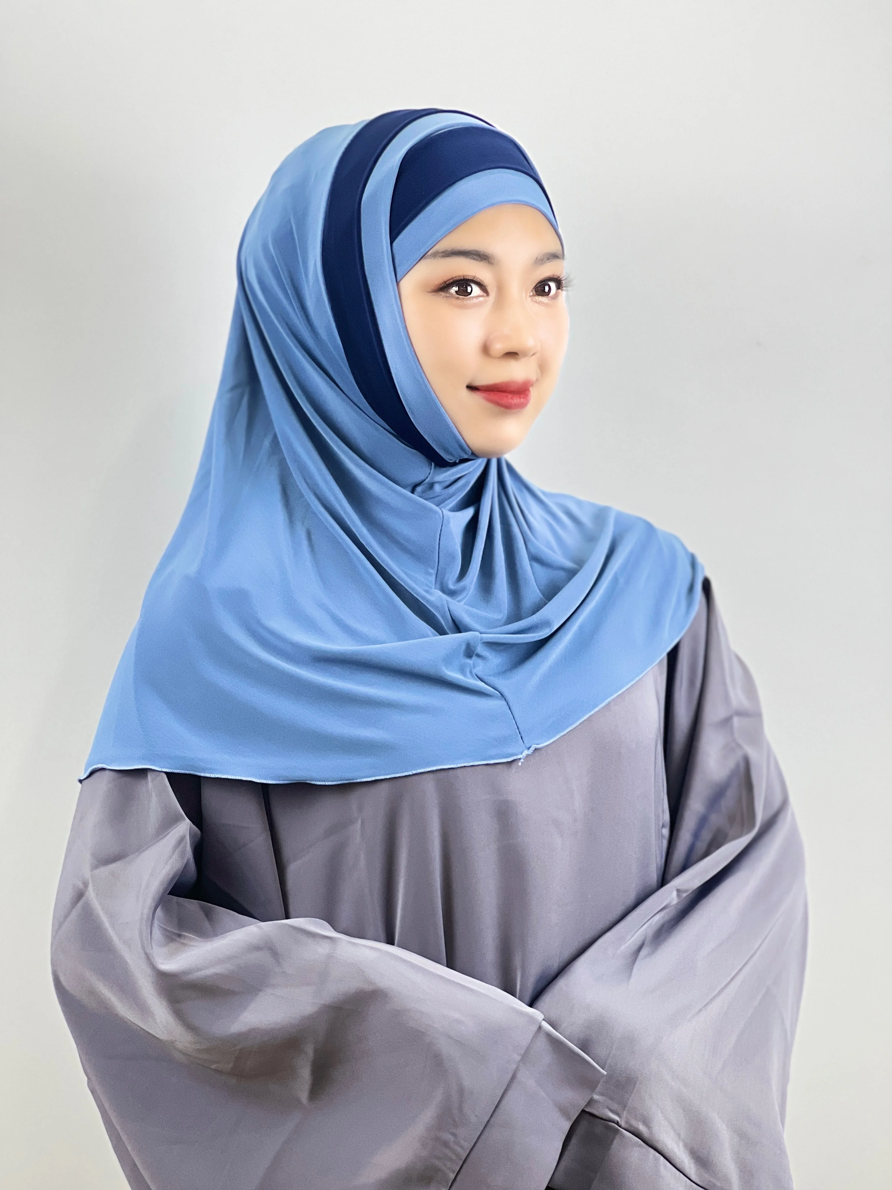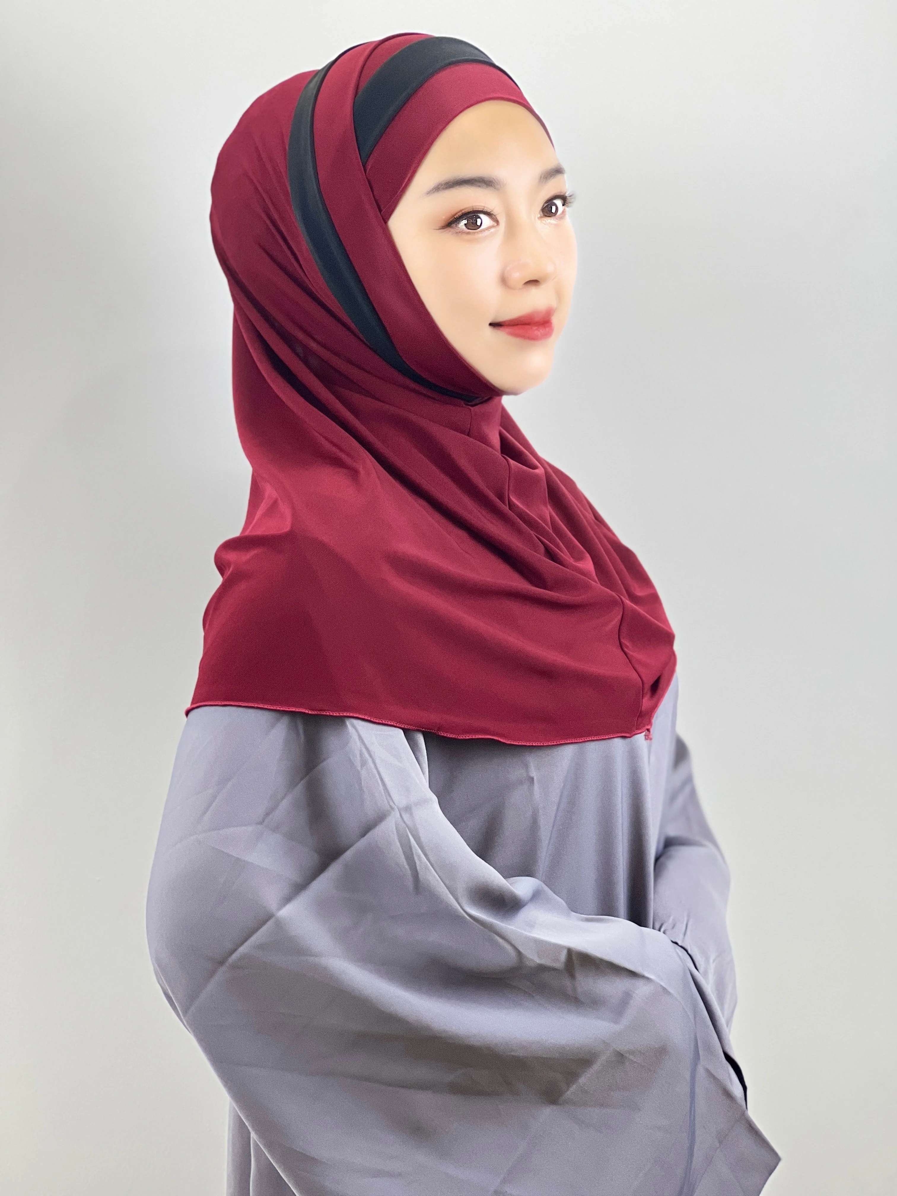 Euramerican Fashion Topi Pelindung Dahi Silang Jari Kaki Dua Warna Jahitan Serban Wanita Muslim Pesta Tabir Surya