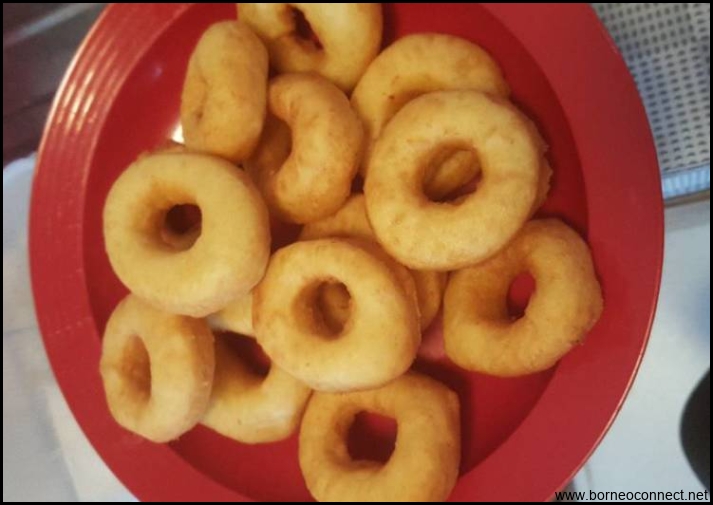 9. Panaskan minyak goreng dalam wajan, lalu goreng donat hingga kecoklatan dan matang sempurna.